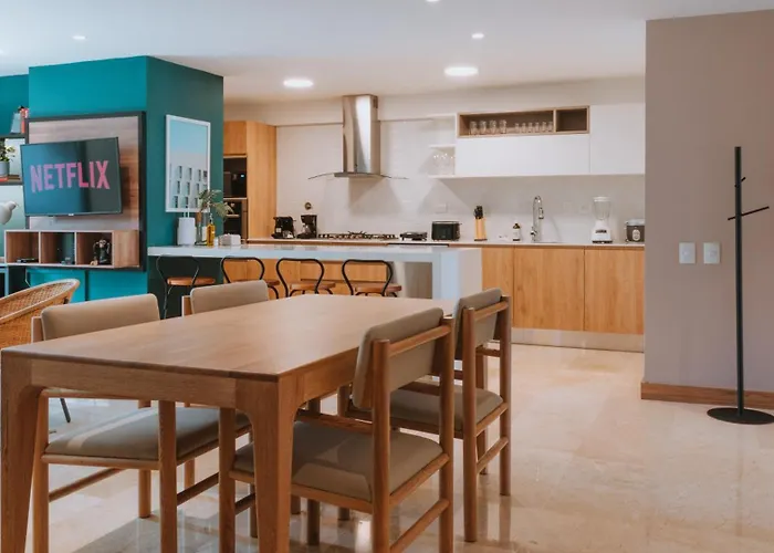 台所も利用できます. アパ-ト数歩の距離のRosso Pomodoroにも数多くの飲食店があります. 宿泊施設から950メ-トルほどのEl colombianoバス停からバスに乗って,メデジンの他の地域を探索することもできます.